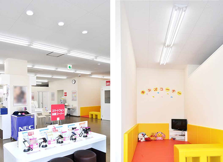 当社は札幌、旭川などで道内最多のドコモショップを展開し、道内でトップクラスの新規販売台数を誇っています。店舗照明はこれまで、蛍光灯を使用していましたが、環境保全の観点から、全店舗でLED照明への置き換えを進めています。恵庭店は移転リニューアルに伴って、オールLED化することになりました。