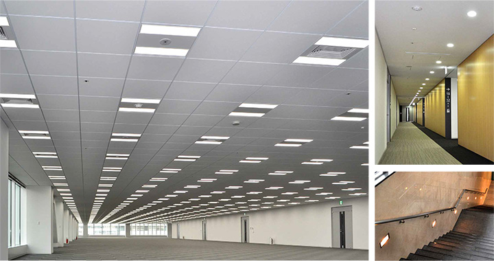 - オフィス空間にグリッドLED照明7,587台を導入。テナント入居者さまのレイアウトプランへの対応力を高めることができました。