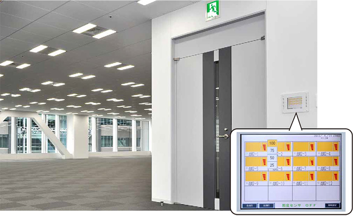 オフィスのドア横に制御パネルをつけ、より高い節電効果を