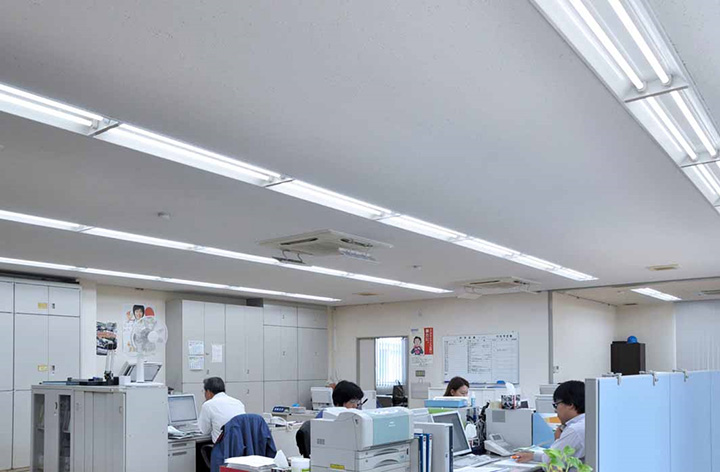 - 消費電力40Wの蛍光灯から28WのLED照明への置き換えで、照明にかかる消費電力量を約3割削減。オフィスの省エネ化を実現しました。