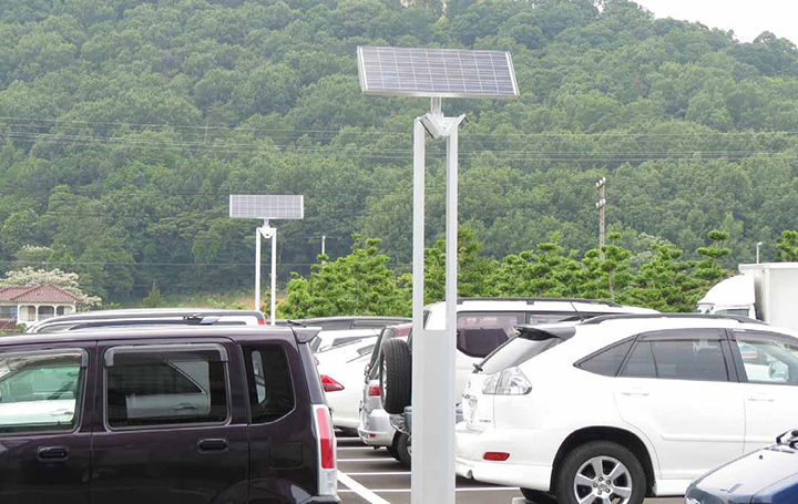 駐車場にはLED導入の第一弾となったソーラー・LED照明灯が2台