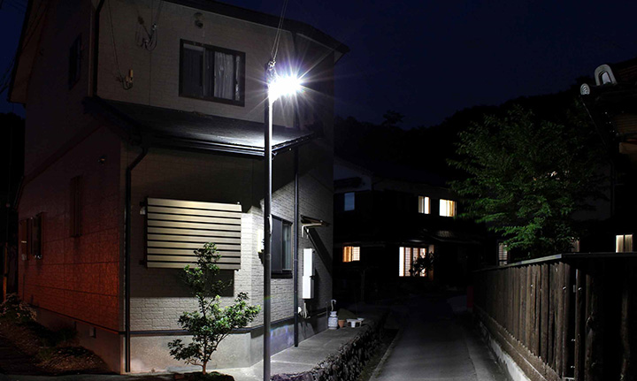 佐用町は、2009年8月の台風で佐用川が氾濫し、山崩れなどの甚大な被害を受けたため、住民には緊急時の防災力を高めたいという思いが強く、LED防犯灯などを用水路周辺に新設することを検討中です。今後は、残っている2,519灯の置き換えを進めると共に、これから設置する照明は全てLED照明とし、町まるごとのLED化を目ざしたいと考えています。