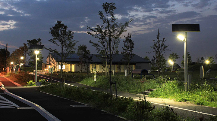 当市では、環境政策課が中心となって、地球温暖化防止を始めとする様々な環境施策に積極的に取り組んでいます。そのため、地元住民の交流や健康促進を目的に整備した「瓦葺ふれあい広場」の照明灯設置においても、環境への配慮は最優先で考えていました。また、周辺が農地で、夜間は特に暗くなるため、利用者の安全と防犯上の観点からも、明るい照明が不可欠でした。