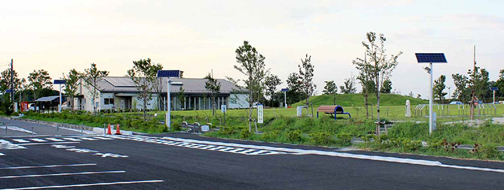 - 独立電源として停電時にも利用でき、震災時に終夜2日間フル点灯し、避難所の目印として役立ちます。