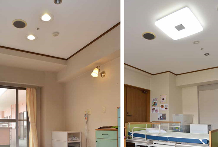 - 明るいLED照明で入居者の表情も見やすくなり、わずかな体調の変化をすばやく把握できるようになりました。