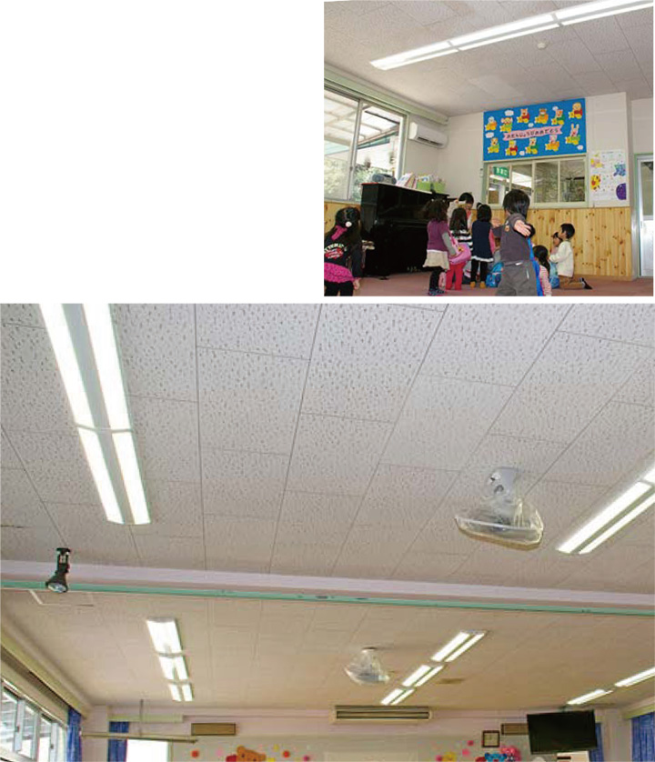 実際に導入してみると、非常に床面が明るくなり、保育士も喜んでいます。保育所の場合は机の上ではなく、床面で様々な工作など作業をする機会が多いので、床面の明るさが重要なのです。