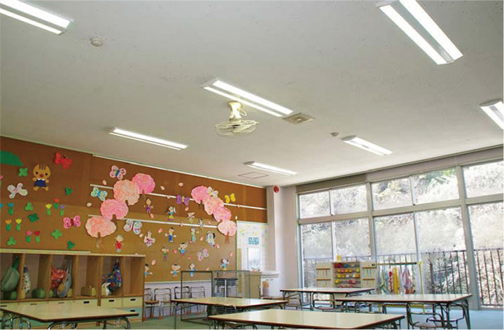 保育士に教育に集中してもらうためちらつきのないLED照明に着目しました。