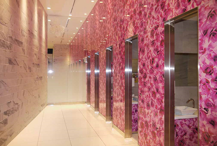 トイレの天井には壁面を効果的に演出するユニバーサルダウンライト