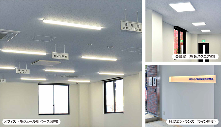 本社社屋の新築に伴い、消費電力の削減や管理の手間を軽減できる照明設備の導入を検討。オフィスや会議室だけでなく、併設する駅の待合室、テナント(物販店舗)など、様々な空間や用途に適した照明器具が求められました。