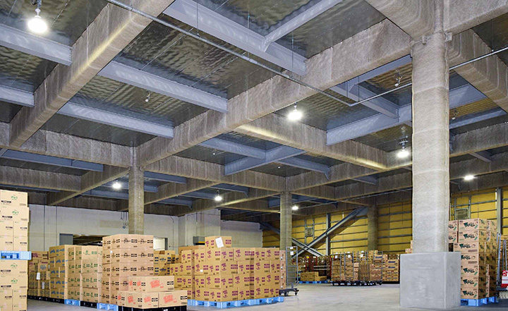 電源オンからすぐに全灯するLED照明で、倉庫内の作業開始がスピードアップ。