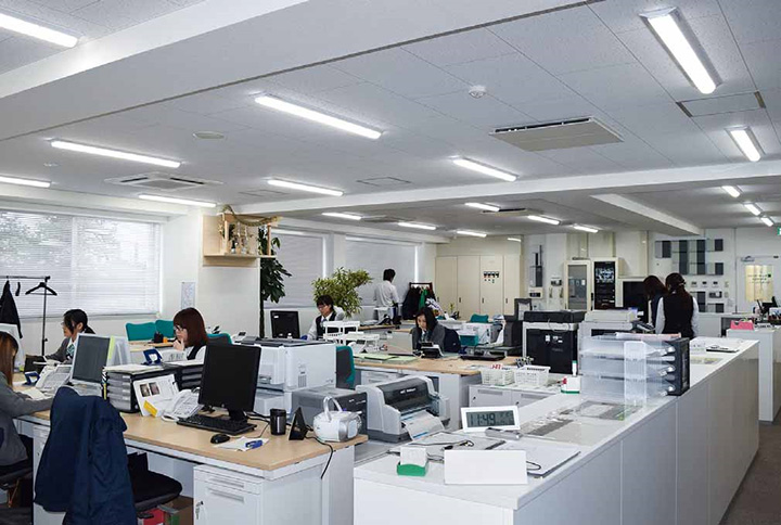 - 電源オンと同時に全灯するLED照明の導入で、業務開始のスピードアップが図れています。