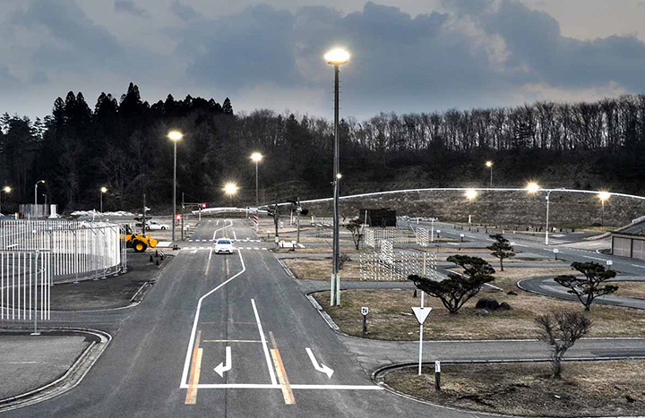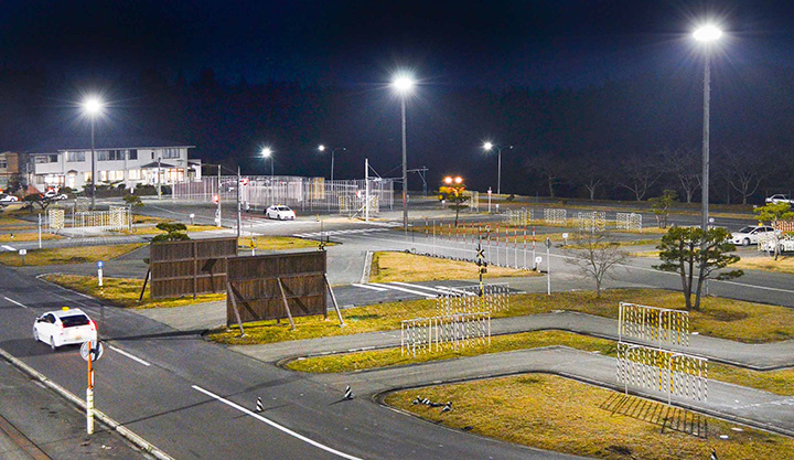 これまで教習コースの照明に高圧ナトリウム灯を使っていましたが、経年劣化のため照度が徐々に低下して、夜間にコースが見づらくなっていました。また消費電力が大きく、ランプ交換も必要だったため、明るく省エネで長寿命の照明器具へ置き替えようと考えました。