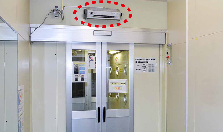 同社北陸工場の包装ルームおよびエアシャワー室入口に設置。2015年5月導入。