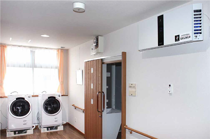 2016年2~3月、上記の業務用プラズマクラスター機器のほか、加湿空気清浄機26台、プラズマクラスターエアコン31台を共用スペース・居室に設置。その他、太陽光発電システム(15.7kW)、LED照明、AQUOS、洗濯機など、多数のシャープ商品を導入。