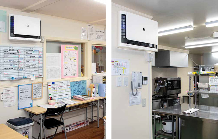 事務室や調理室にも設置してスタッフの健康にも配慮
