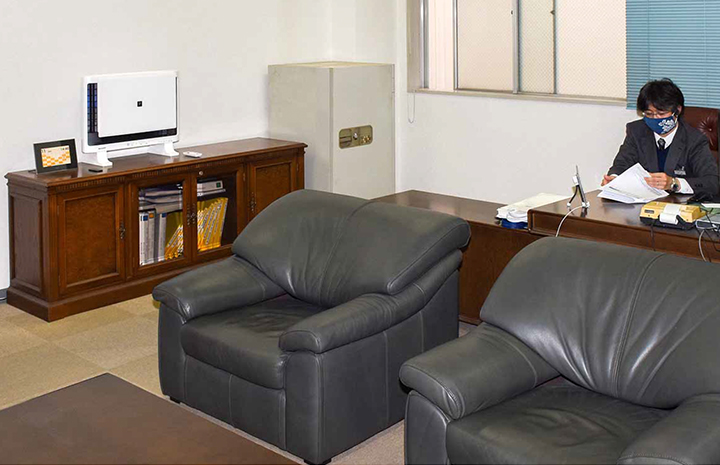 社長室ではFU-MK500をサイドボード上に置いて活用