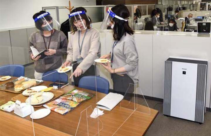 事業所再編などでオフィスをビルの2フロアから1フロアに統合したのと同じ頃、新型ウイルスに対する懸念が急速に広がりました。フロア統合で人の密度が高まっており、在宅勤務などの対策を導入しましたが、出社が必須の業務もあることから空気浄化で安全安心な職場環境の整備が急務でした。また、オフィスで商品の試食や商談も行うため、食べ物のニオイがこもりがちで、脱臭効果も高い空気清浄機の導入を検討しました。