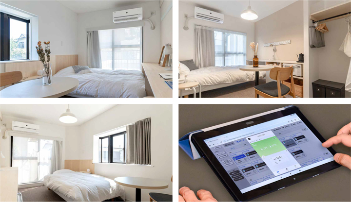 2023年8月導入。光熱費込みのマンスリーマンション「TOMOS保土ケ谷」各部屋のシャープ製無線LAN搭載エアコン(55台)とクラウド接続し、電気代の管理に活用。
