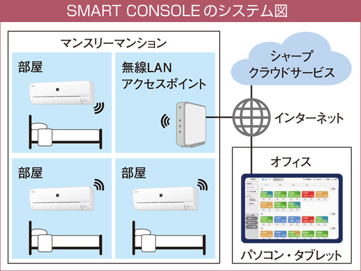 インターネットで調べて見つけたのがシャープの集中管理システム「SMART CONSOLE」です。部屋に設置したシャープ製無線LAN搭載エアコンとクラウド接続し、離れたオフィスから一棟丸ごと動作状況をパソコンのブラウザで見られて、電気代をチェックできることを第一に評価しました。また、「TOMOS保土ケ谷」は既存施設のリノベーション物件であり、設備・配線などの追加工事なしで簡単に導入できるのもポイントでした。