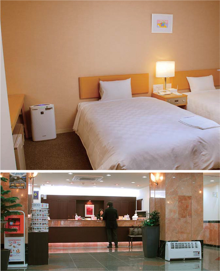 2010年2~3月に、トレストイン田町、トレストイン日本橋の全客室等に加湿空気清浄機をそれぞれ125台、200台設置。同時期に両ホテルのロビーにIG-840/820を2台ずつ設置。