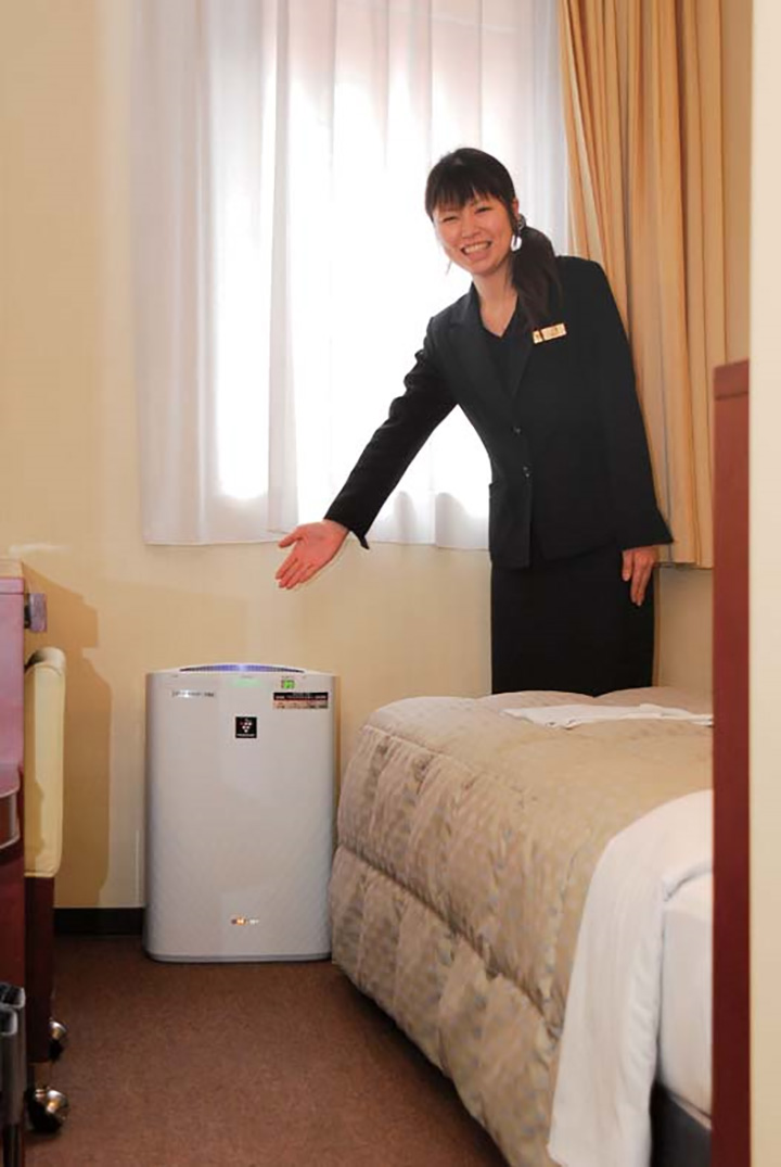 - 全室に加湿空気清浄機を設置したことで、お客様に手間をかけずにご利用いただけ、ホテルスタッフの負担も軽減しました。
