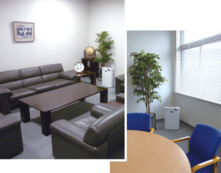 - プラズマクラスターイオンの脱臭効果で、商談室のニオイがほぼなくなり、お客さまにも大へん好評です。