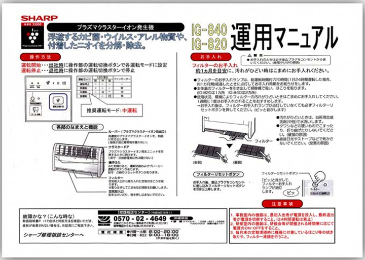 導入製品「プラズマクラスター機器」について