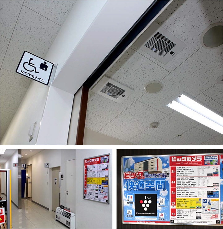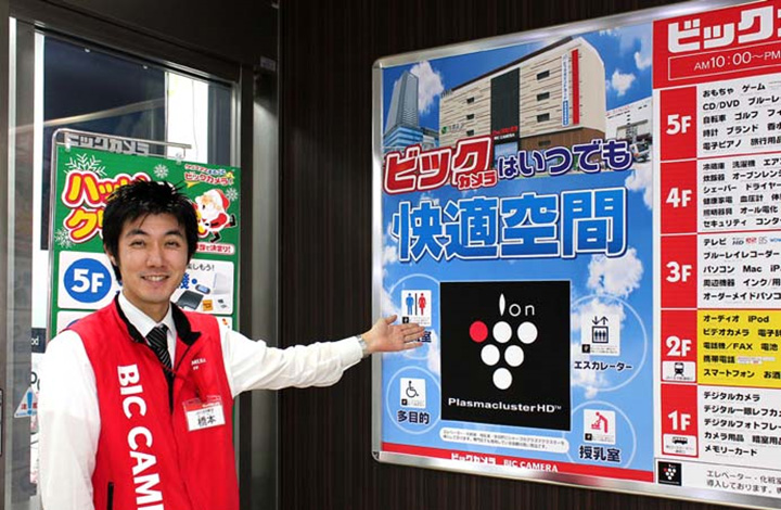 2010年11月、新店オープンしたビックカメラJR 八王子駅店のトイレ、授乳室、通路に設置。また、エレベーターもプラズマクラスター搭載タイプを採用。