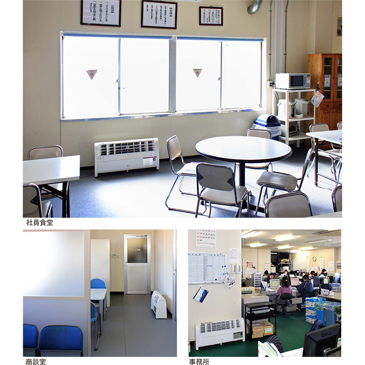事務所、商談室、会議室、食堂、ロールケーキのスポンジ等の半製品を置く一時保管室などに計10台を導入。また、本社でも7台、厚木工場でも4台導入されている。