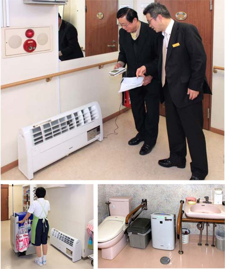 食堂兼ラウンジ、廊下、玄関など、各階の共用スペースに17台を設置し、共用トイレにも加湿空気清浄機を導入しましたが、目に見えないイオンがフロアーにしっかりと充満していることを確認するため、毎月定期的にイオン濃度測定を行っています。これにより空気の衛生に対して大きな自信が得られています。