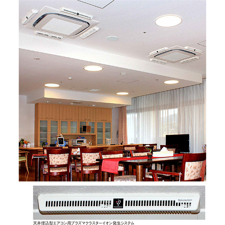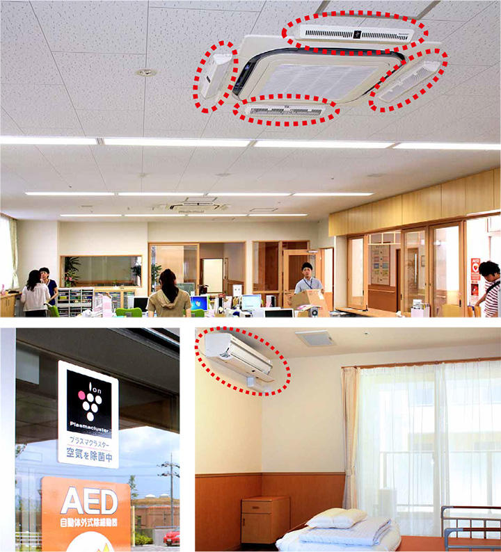 2011年3月、居室はエアコン、共用スペースは天井埋込型など、プラズマクラスター搭載機器を計823台導入。