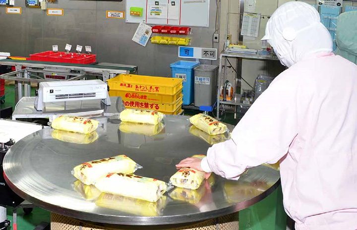 1927年創業。和菓子・洋菓子の製造、販売を主な事業とされる。愛媛および京都の計4カ所の工場で、1日約110万個の商品を製造されている。