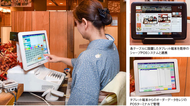 大阪の豊中店、泉大津店、阪急東通り店、京都の三条店に、シャープPOSシステムとの連携でテーブルオーダーシステムを、2017年7月より導入。