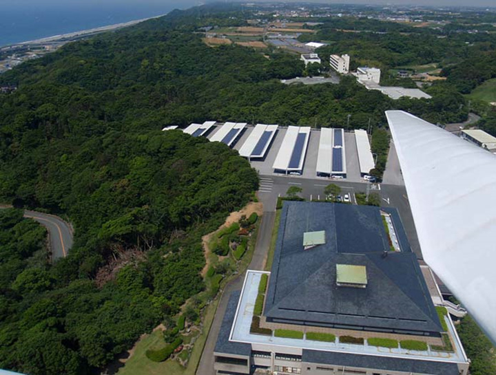導入の検討時に、駐車場の広大な屋根面積がそのまま活用でき、ゴルフ場という立地から資材搬入もスムーズに行えるという太陽光発電にとっての好条件が揃っていました。しかも、中部電力の変電所が約500mの近郊にあり、売電の必要条件となる“地の利”に加えて、経済産業省の「新エネルギー支援補助」を受ける事ができたことも、導入の大きな決め手でした。