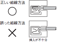 ゆるみ・抜けのないよう確実におこなってください。 - 速結端子の場合はドライバー等の工具で十分に締め付けてください。