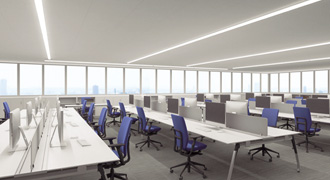 モジュール形ベース照明で、すっきりとした快適なオフィス環境を実現。