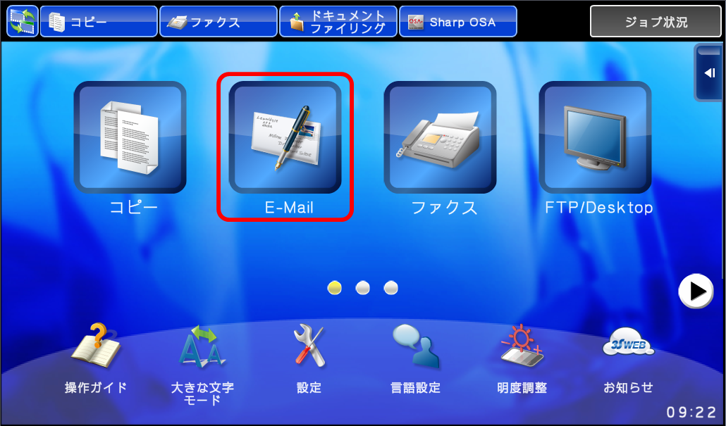 ②ホーム画面の[E-mail]を押してください。