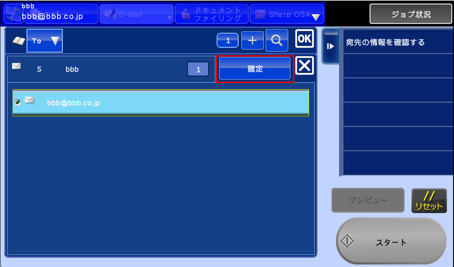 10. 送信する宛先が一覧表示されますので、送信先が間違っていないか確認し、[確定]を押してください。
