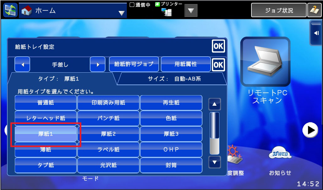 ⑤「タイプ」を選択して、[厚紙1]を押してください。