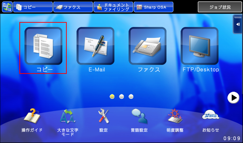 ②ホーム画面の[コピー]を押してください。