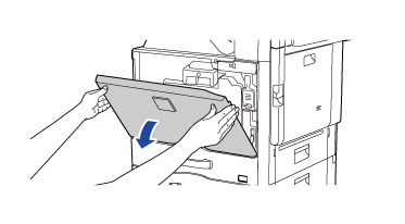 トナーカートリッジは図のように両手に持ってゆっくりと引き抜きます。