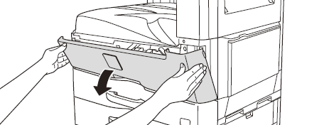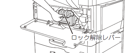 トナーカートリッジは図のように両手に持ってゆっくりと引き抜きます。