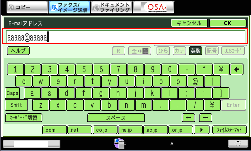 ⑦キーボード画面が表示されますので、E-mailアドレスを入力後、[OK]を押してください。