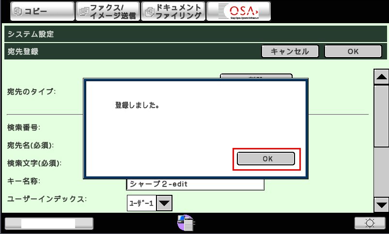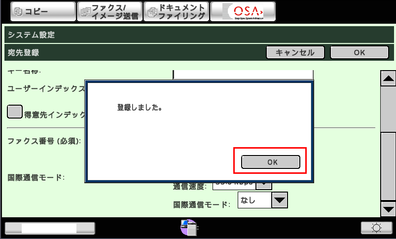 ④「登録しました。」と表示されますので、[OK]を押してください。