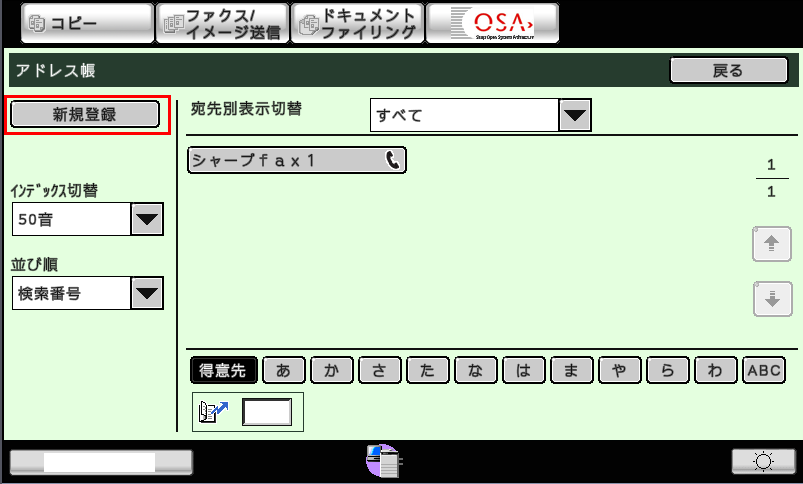 ⑤「アドレス帳」画面に戻りますので、登録した宛先が表示されていることを確認してください。