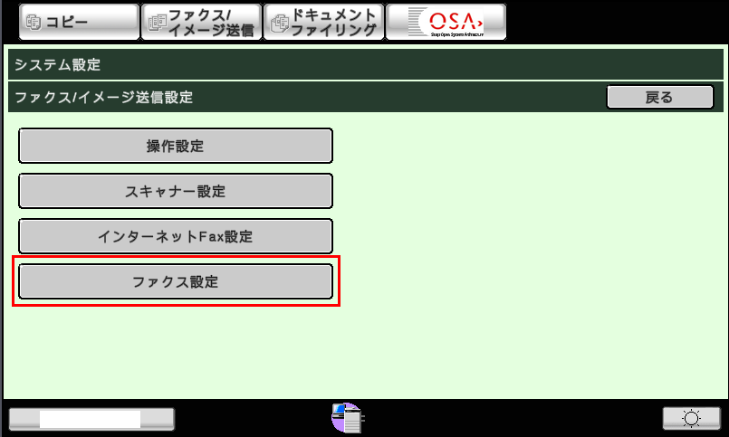 ⑤「ファクス/イメージ送信設定」画面が表示されますので、[ファクス設定]を押してください。
