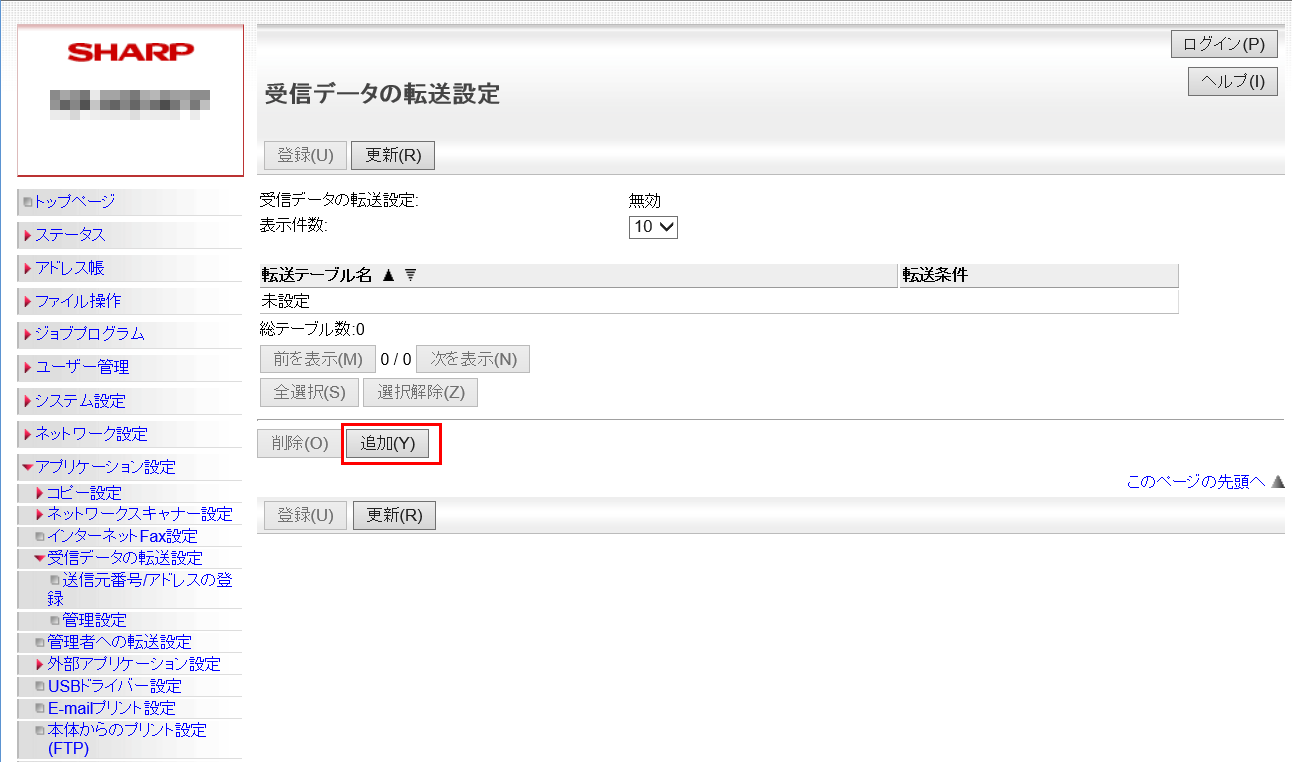 ※ 転送設定を「有効」にするには、管理者パスワードを入力してログインする必要があります。