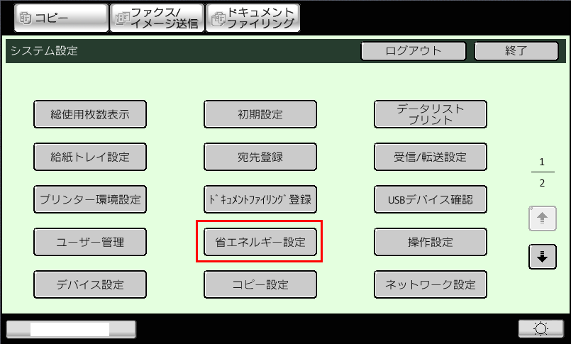 ④[省エネルギー設定]を押してください。