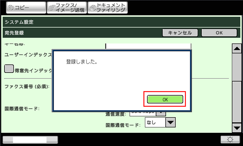 ④「登録しました。」と表示されますので、[OK]を押してください。