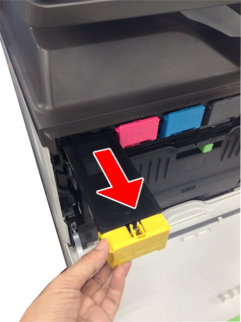 ②交換したい色のトナーカートリッジを水平にゆっくり引き出してください。